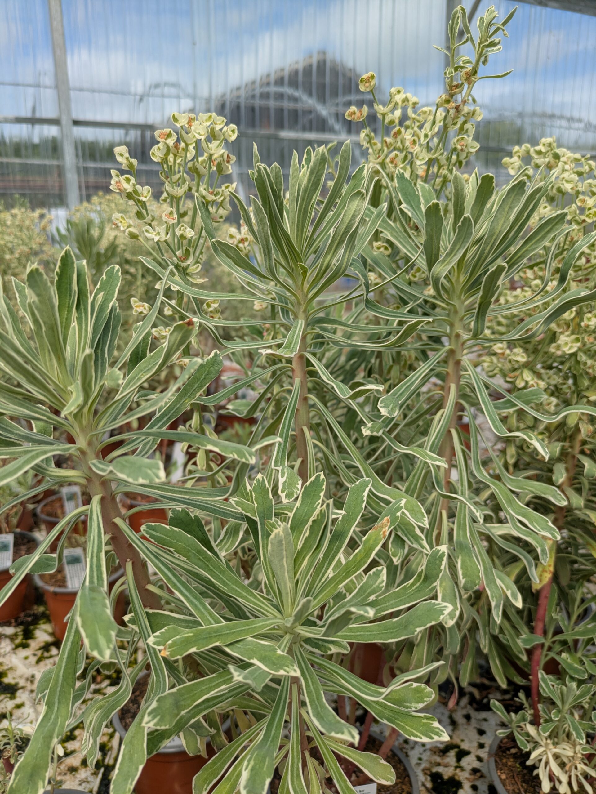 Grønne blade med hvid kant. Stedsegrøn.
